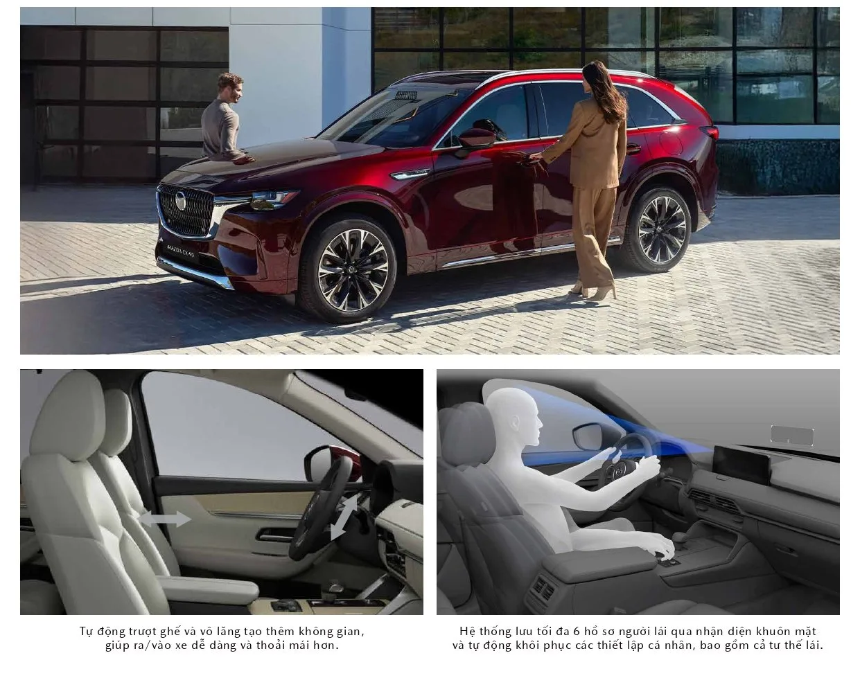 Một trong những điểm nhấn công nghệ trên CX-90 là hệ thống cá nhân hóa người lái thông minh – Mazda Driver Personalization System, sử dụng camera nhận diện khuôn mặt người lái, xác định vị trí mắt, tự động điều chỉnh ghế ngồi, vô-lăng, màn hình HUD, gương chiếu hậu theo hồ sơ người dùng. Mazda cho rằng, cá nhân hóa trải nghiệm là yếu tố ngày càng quan trọng trong phân khúc cao cấp, khi người dùng kỳ vọng phương tiện không chỉ tiện nghi, mà còn thấu hiểu và thích ứng thói quen cá nhân.