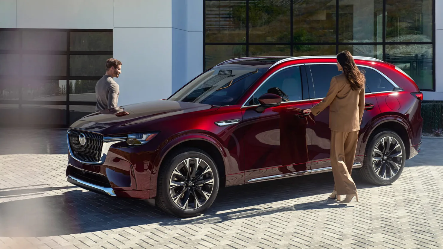 Xe mang ý tưởng thiết kế Dignified Beauty, bước tiến mới của ngôn ngữ thiết kế Kodo tinh giản, phù hợp vai trò SUV flagship của Mazda. Phần đầu xe dài, kết hợp kiến trúc đặt dọc giúp CX-90 gợi đến hình ảnh các dòng xe sang cổ điển. Bề mặt thân xe xử lý liền mạch, kết hợp sắc màu cao cấp Artisan Red Premium, ứng dụng công nghệ Takuminuri – mô phỏng thao tác sơn tay của nghệ nhân thủ công.