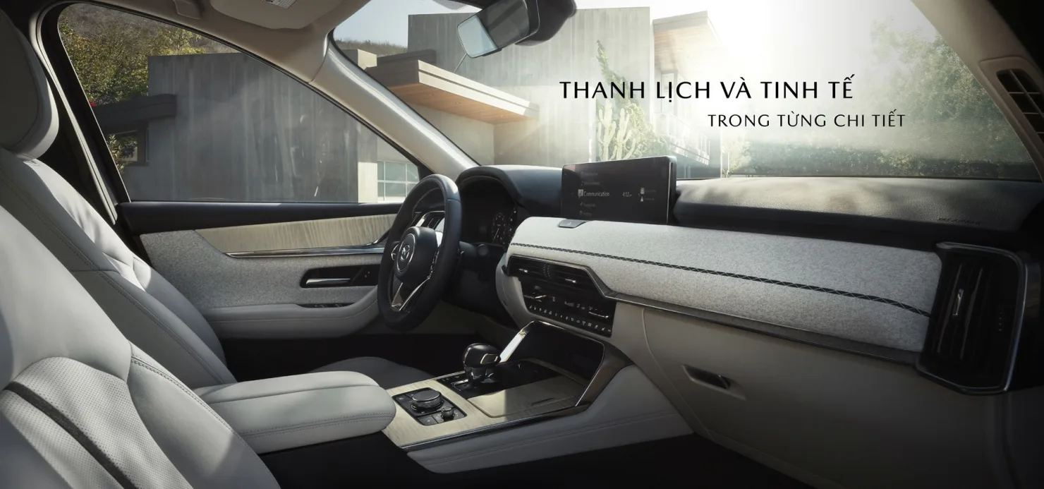 Khoang nội thất CX-90 được hoàn thiện theo tiêu chuẩn chế tác cao cấp của Mazda, với quy trình lựa chọn chất liệu, xử lý bề mặt, ướm thử và lắp ráp thủ công.