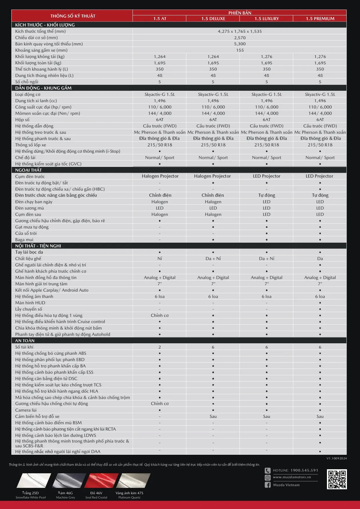 | Mazda CX-3 1.5L AT: | 549.000.000 ₫ đ |