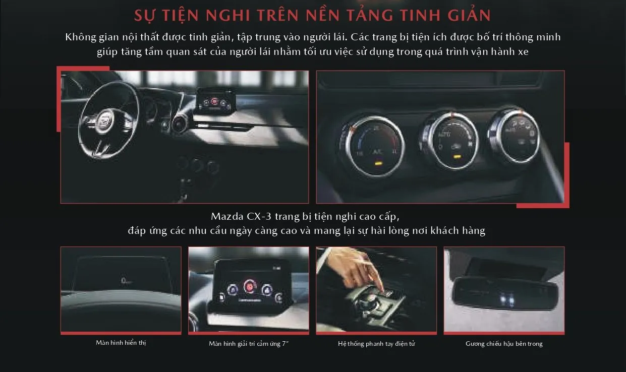 Khoang nội thất của CX-3 được thiết kế theo triết lý "Human Centric", đặt sự tiện nghi và thoải mái của người dùng lên hàng đầu.